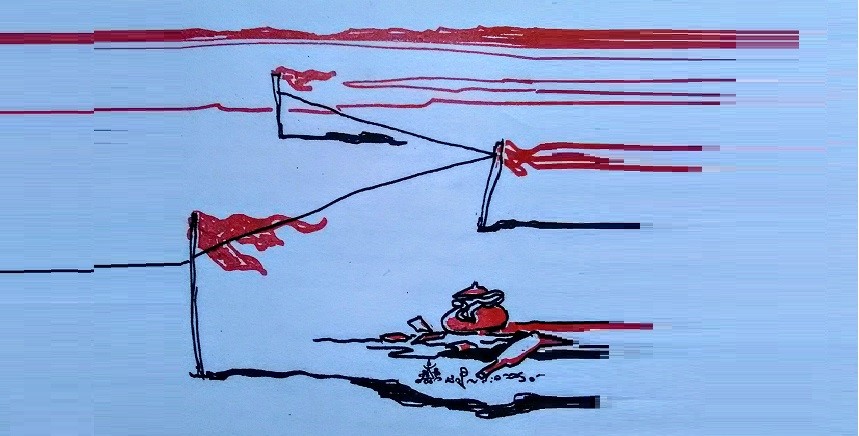 “一些小旗,大家来看呀,一些小旗。呵……旗子是大塑料袋。”