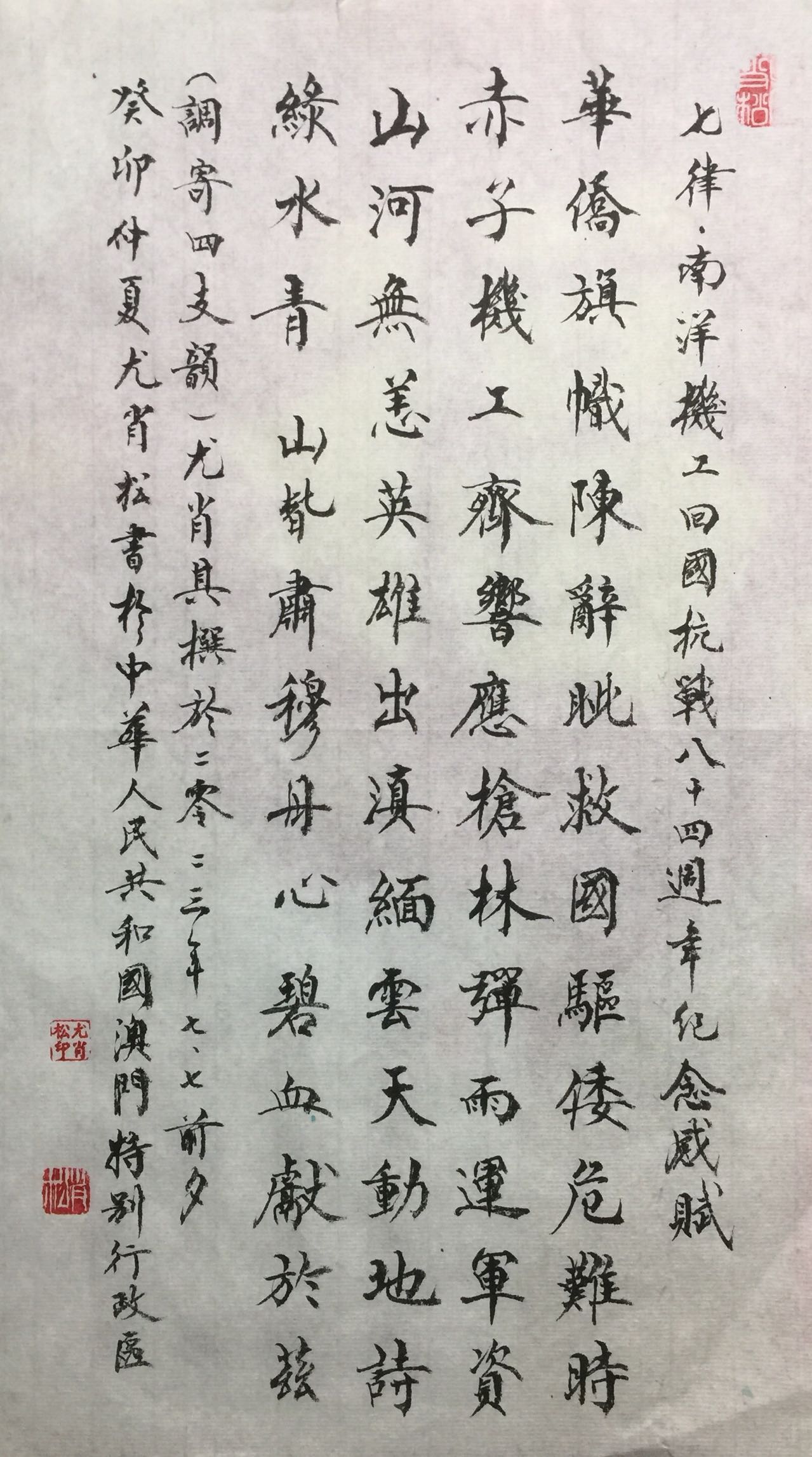 转载请注明:《七律•南洋機工回國抗戰八十四週年紀念感賦(調寄四支韻)(尤肖其)》 复制链接