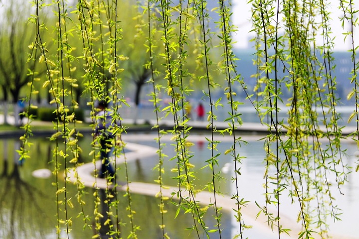 苍天雨后雾连绵,碧柳摇枝草卉妍。