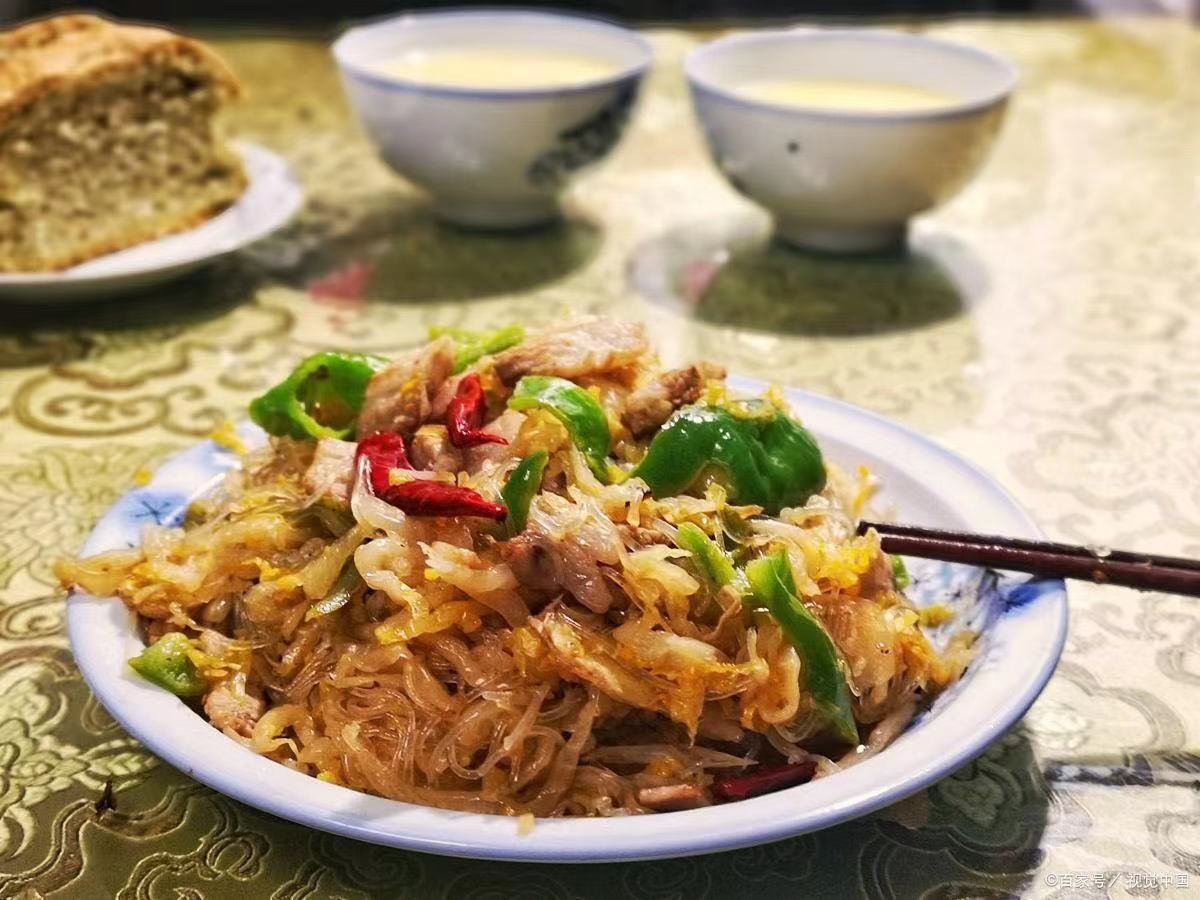 图六,改良版酸菜粉。这道菜本来是地道的东北传统菜肴,被她改良了。酸酸甜甜微辣,酸香美味,回味无穷,非常下饭。