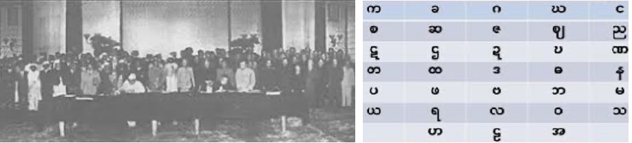 左:中缅签订边界条约,右:缅甸33个基本字母