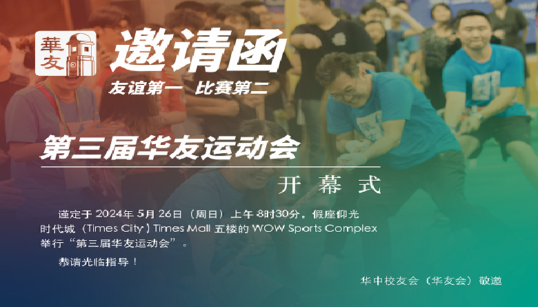 谨定于2024年5月26日(周日)上午8:30,假座仰光时代城(Times City)Times Mall 五楼的WOW Sports Complex举行“第三届华友运动会“,恭请光临指导!
