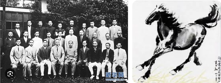 左:孙中山辛亥革命,右:画家徐悲鸿奔马国画