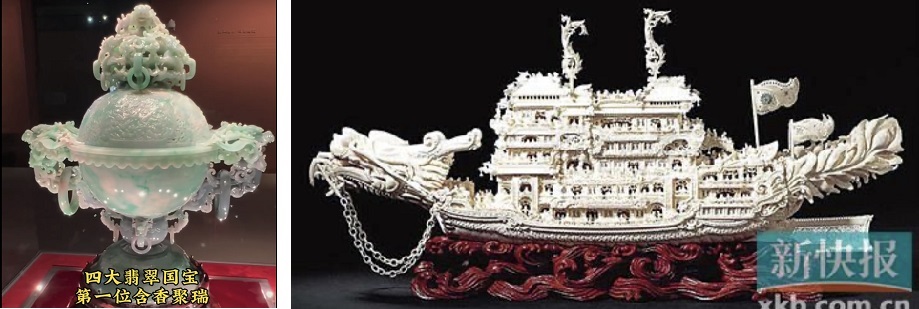 左:现代中国玉雕精品 右:现代中国象牙雕刻精品