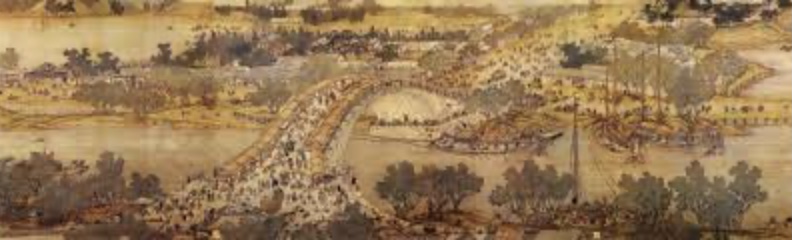 北宋画家张择端的"清明上河图"画卷,描术了都城汴京(开封)清明时节繁忙景象。在纵24.8厘米,横528厘米的小画面上,绘画500余人,各种动物,车辆,树木风景,应有尽有,中国瑰宝,世界名遗。如今清明上河图高科技电子版一问世,观众仿佛回到了宋朝,令人叹为观止。