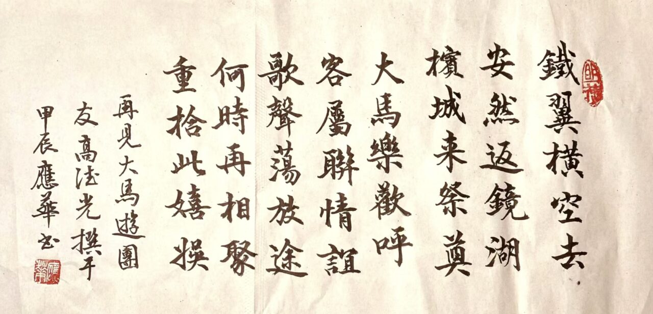 . . 華夏文明今古傳, 楚辭漢賦宋唐篇。 濠江薈萃吟風雅, 葡韻悠揚入管絃。 融滙中西相碰撞, 切磋音律共承宣。 好將世界詩歌節, 砥礪騷壇笑比肩。 书法 一〉馮利發 二〉劉北照 三〉茂松 四〉黎勝培 五〉周永騰 六〉吳錦蓮...