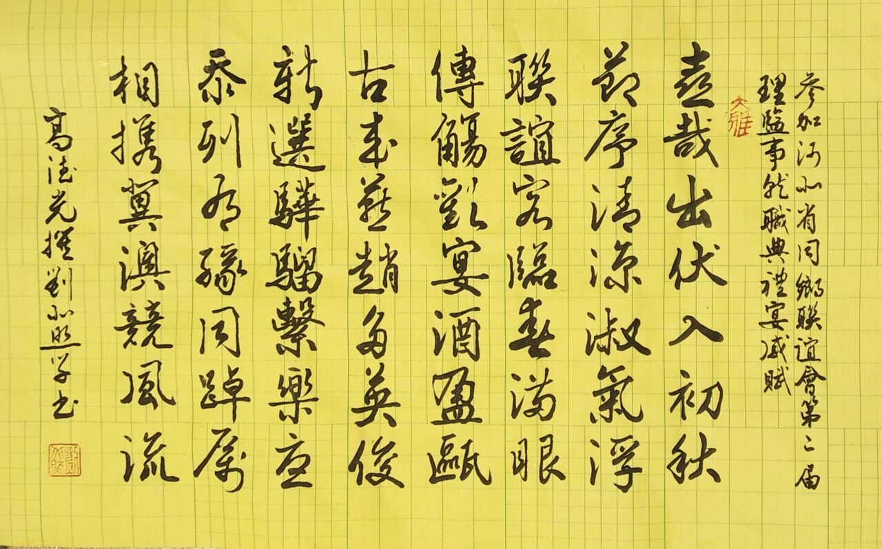 . . 華夏文明今古傳, 楚辭漢賦宋唐篇。 濠江薈萃吟風雅, 葡韻悠揚入管絃。 融滙中西相碰撞, 切磋音律共承宣。 好將世界詩歌節, 砥礪騷壇笑比肩。 书法 一〉馮利發 二〉劉北照 三〉茂松 四〉黎勝培 五〉周永騰 六〉吳錦蓮...