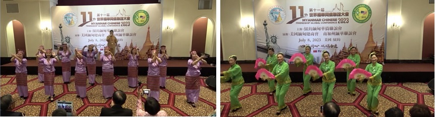 左:纽约缅华团精彩歌舞, 右:纽约华人团体精彩歌舞