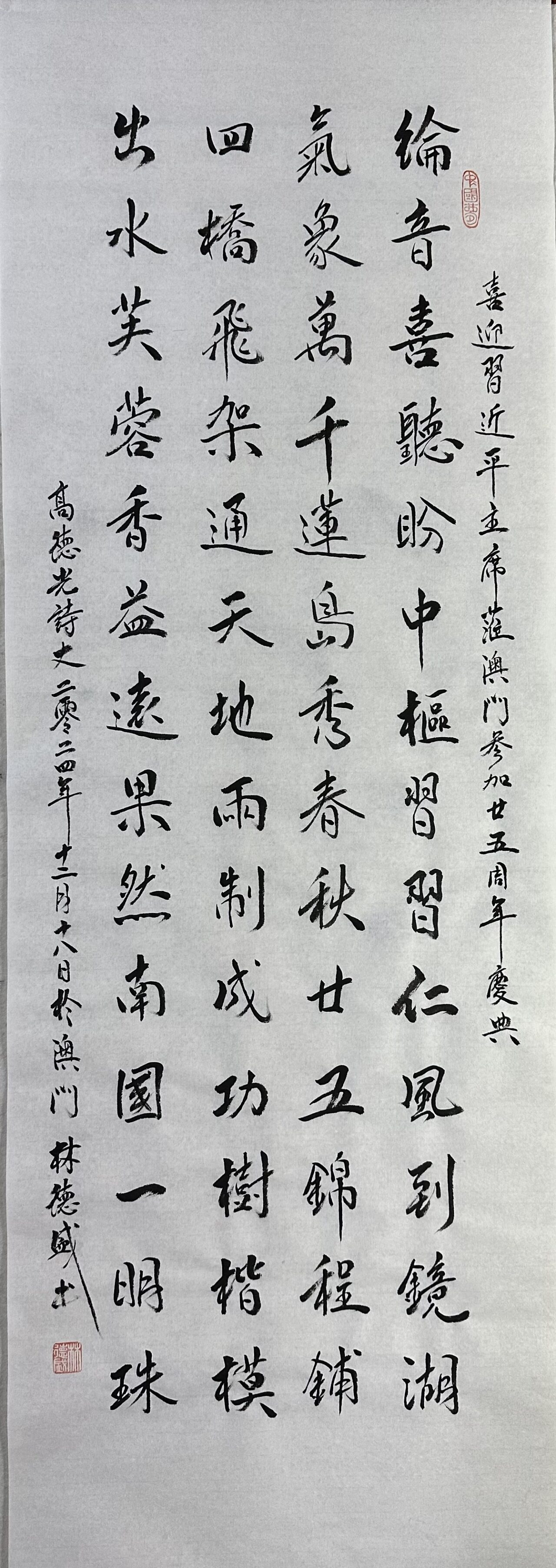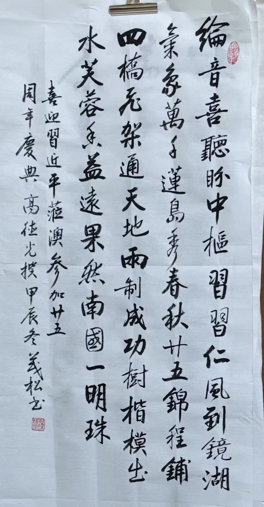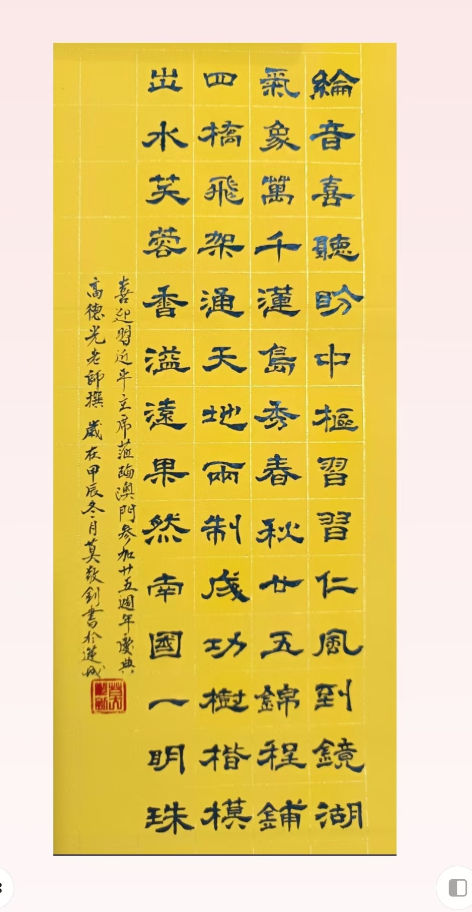 . 復興之路獻嘉謨,軒蓋如雲滙首都。兩會弘開新格局,九州擘劃大藍圖。同商國是輿情奮,共為民生錦繡鋪。議案千條天地換,人間盛世在茲乎! 书法 一〉馮利發二〉李燕軍三〉劉北照四〉茂松五〉周永騰六〉李錦帆七〉羅耀祖八〉李應華九〉莫敬釗十〉黎勝培十一〉阮偉生十二〉岑建平十三〉尤肖松十四〉林德盛 . . . . . . . . . . . . Post...