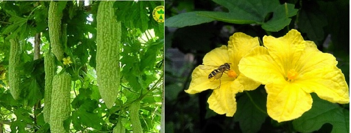 相貌添麻皱,黄花带绿莹。喜悬棚架比风铃。