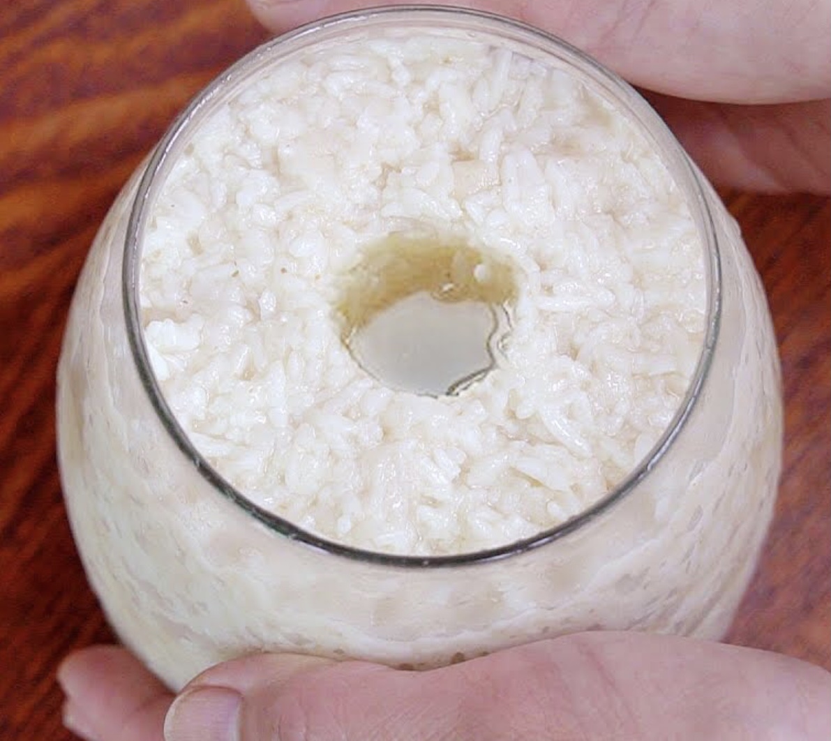 - 添加凉白开,把成团的糯米压散开。等米的温度降到三十度左右,再撒入酒曲,,否则酒曲可能因为温度太高而失去效应。