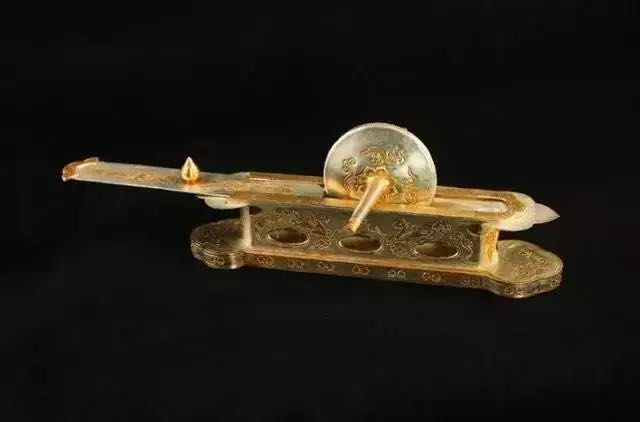 图一,鎏金鸿雁紋云纹茶碾子