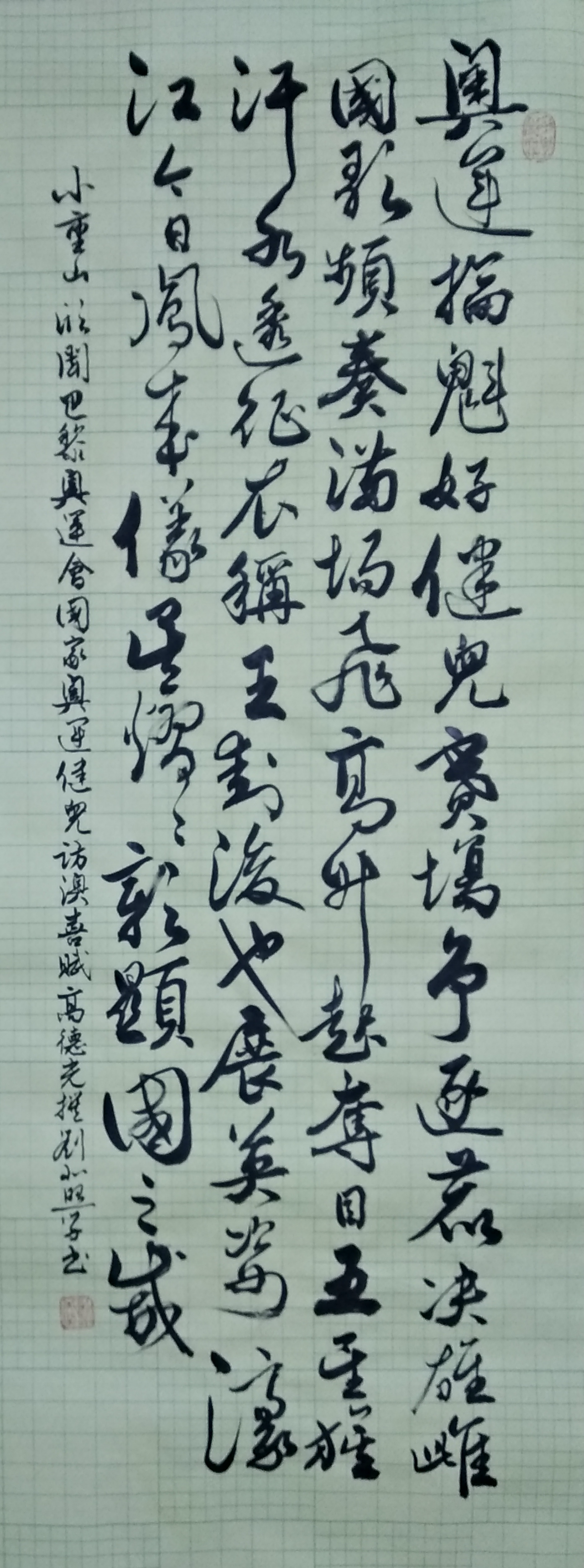 . 復興之路獻嘉謨,軒蓋如雲滙首都。兩會弘開新格局,九州擘劃大藍圖。同商國是輿情奮,共為民生錦繡鋪。議案千條天地換,人間盛世在茲乎! 书法 一〉馮利發二〉李燕軍三〉劉北照四〉茂松五〉周永騰六〉李錦帆七〉羅耀祖八〉李應華九〉莫敬釗十〉黎勝培十一〉阮偉生十二〉岑建平十三〉尤肖松十四〉林德盛 . . . . . . . . . . . . Post...