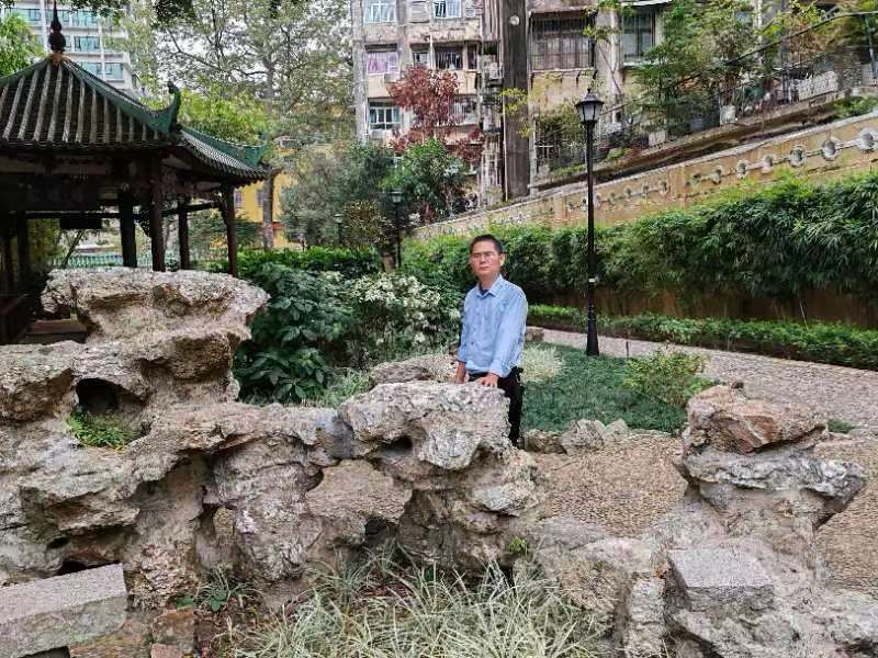 註:中山詩詞楹聯學會副主席鄒優添兄日前蒞澳同遊盧九公園。