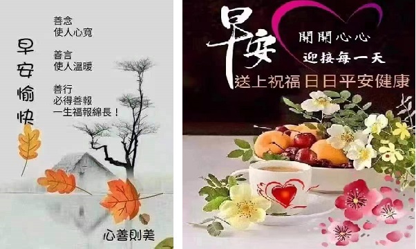 一个祝福,让人精神爽朗;一声问候,让人倍感亲切;一句善语,让人心旷神怡;牽挂中,共度风风雨雨,问候中,伴随平平安安;祝福中,又迎來新的一天,愿時光不老,我们大家都好!