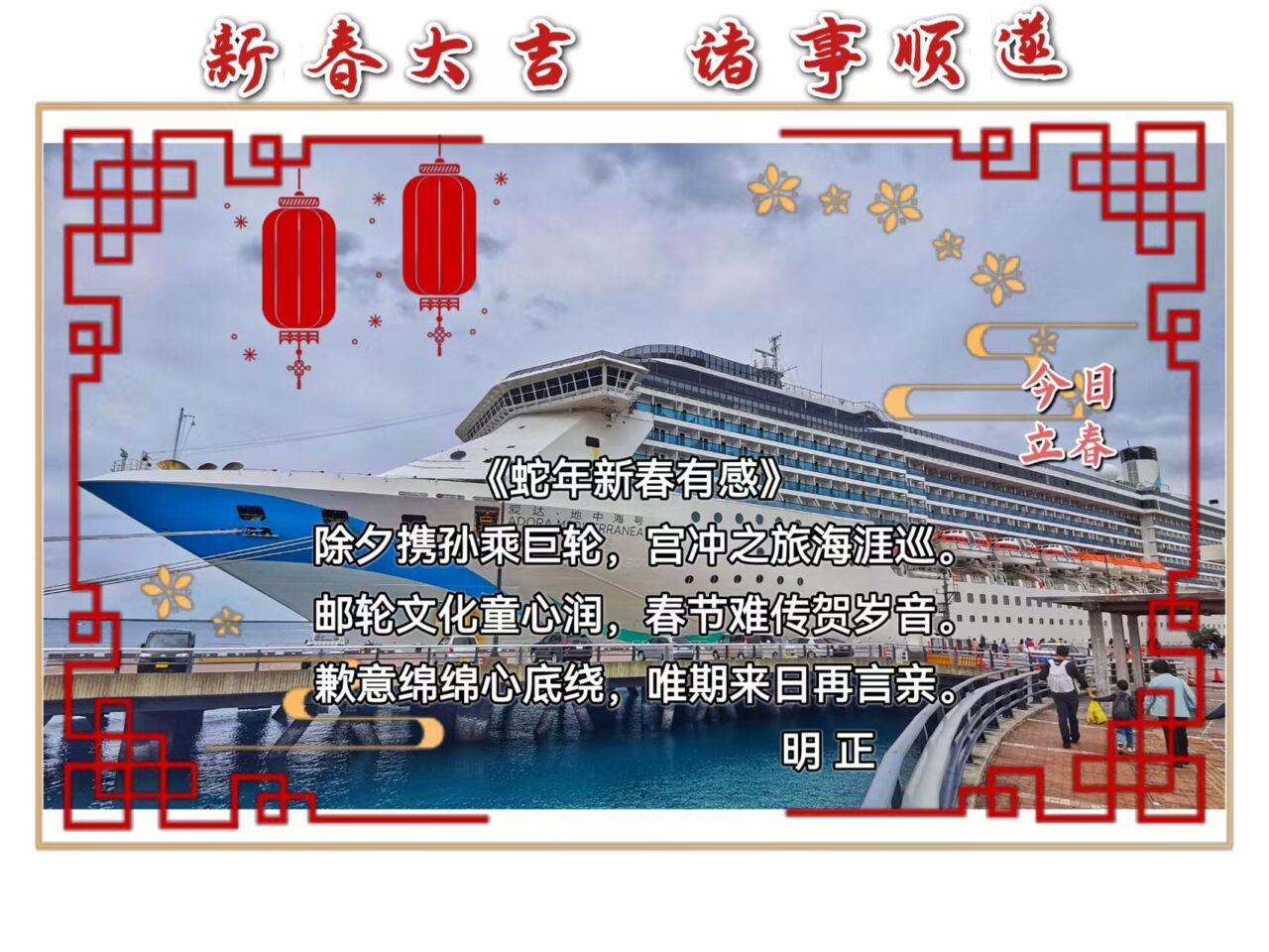 邮轮文化童心润,春节难传贺岁音。