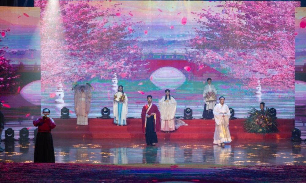 “树叶吹奏诗经花艺汉服走秀”节目中的老师和同学们