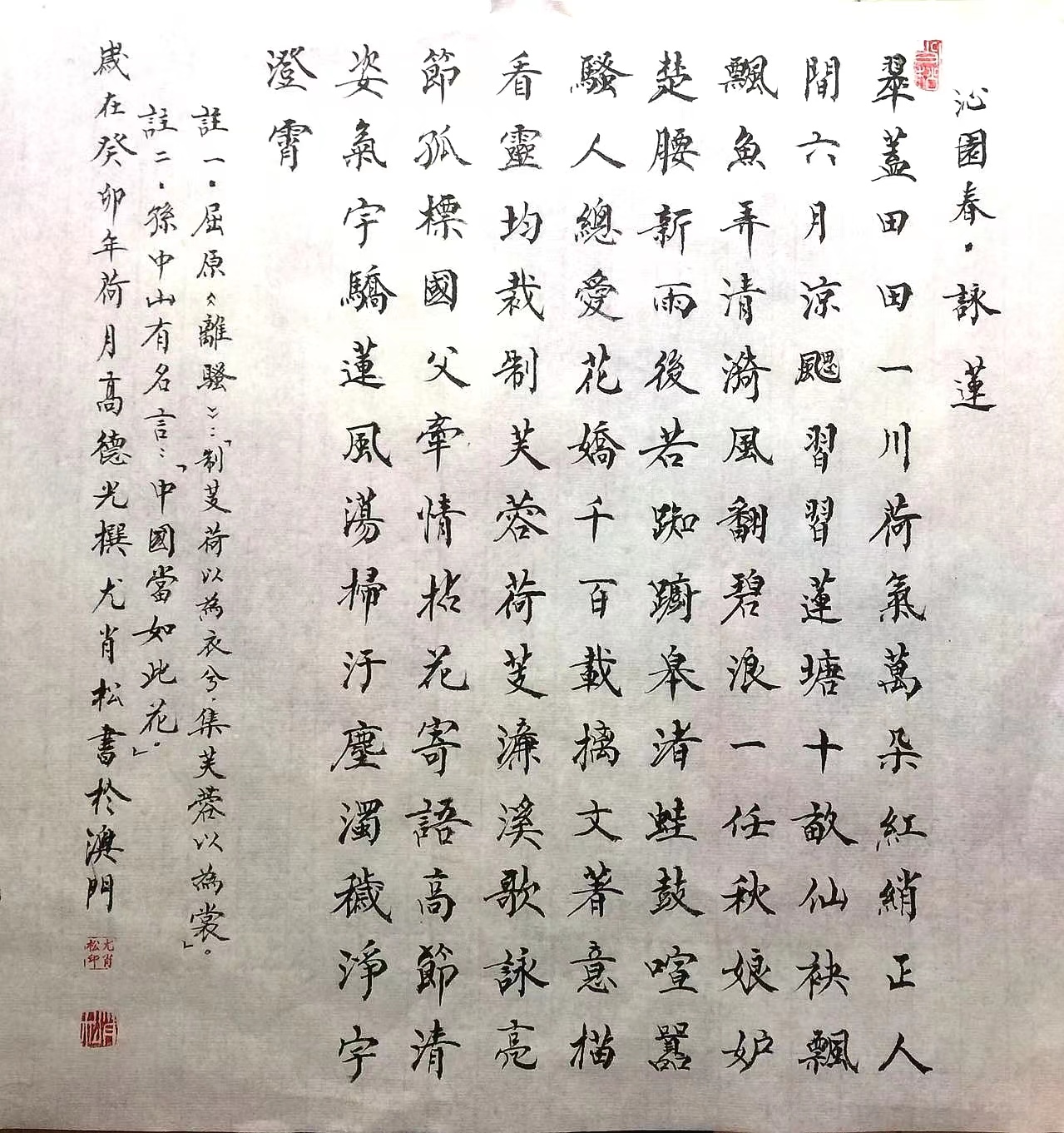 註一):屈原《離騷》:“制芰荷以為衣兮,集芙蓉以為裳。”