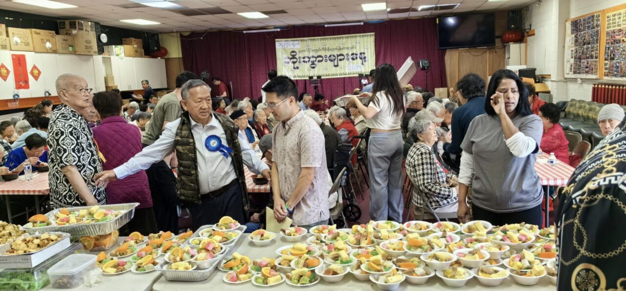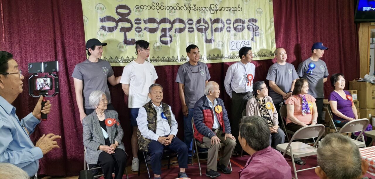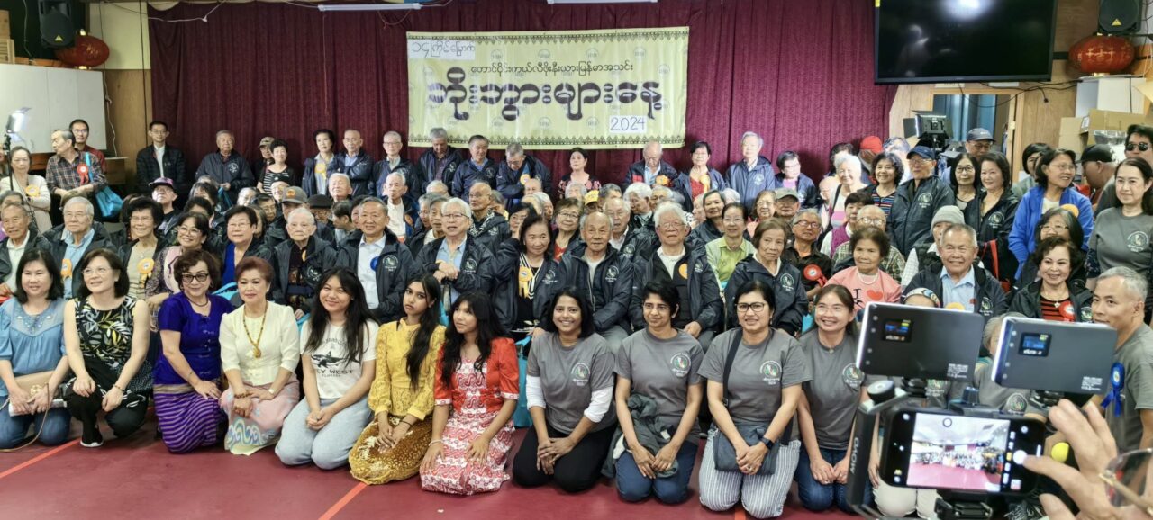 2024-4-21日洛杉矶缅甸会假借缅华会会所隆重举行泼水节敬老活动,当日上午万里无云,微风轻拂,前来参加敬老活动的寿星们,有的健步自行,有的拄着拐杖坐着轮椅,有的儿孙掺扶,高高兴兴,步入礼堂,一排排桌椅整齐排列,全部给75岁以上寿星们坐满,可谓座无虚席。