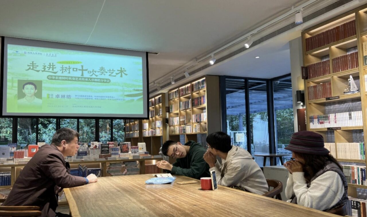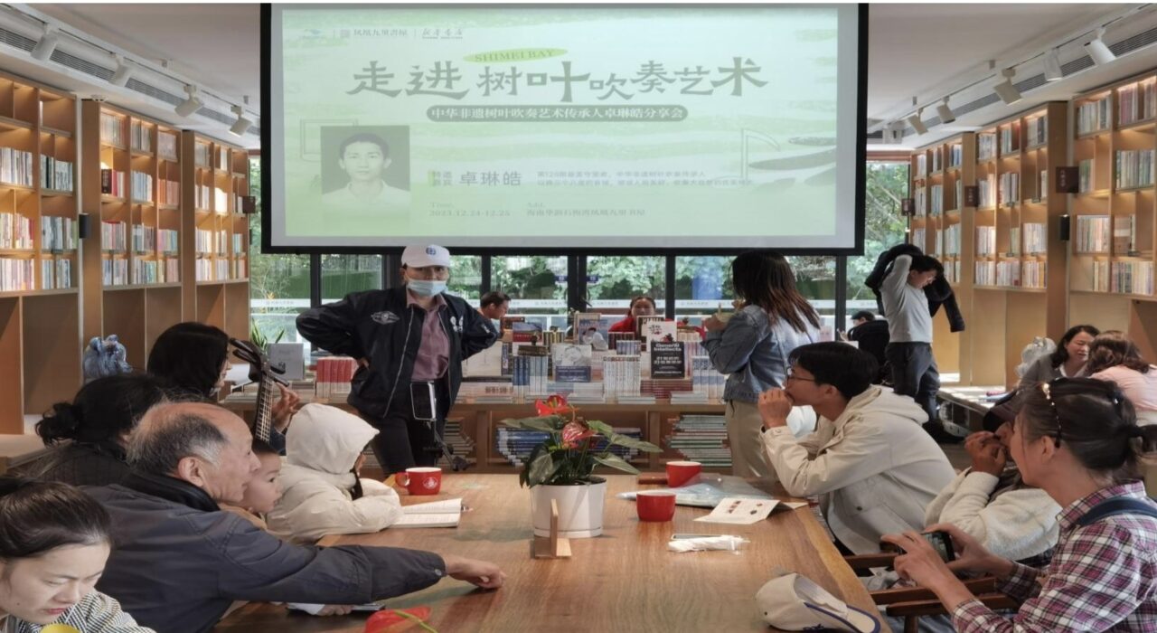 年轻的特邀嘉宾卓琳皓,第128期最美守望者,是海南万宁市非物质文化遗产树叶吹奏代表性传承人,大学毕业,即卓忠明的第一代弟子。他在短短的几年里虚心拜师艰苦训练,克服了常人难以承受的困难,从抓叶吹气寻找发声点开始练习,到能用树叶~金叶~花瓣演奏《谁不说俺家乡好》、《久久不见九九见》、《映山红》、《我爱你中国》、《喀秋莎》等20余首中外名曲,成了卓忠明为数不多的优秀徒弟,世间少有的特技人才。他还学会了自制吹奏视频《兴隆情》(卓叶词,罗时宪曲)和课件《努力挖掘大自然的宝藏》的编撰,与师傅及基地师兄妹一起,参加了省市电视台的专栏拍摄,万宁兴隆以及深圳市的多场传承展示演出,受到欢迎,是一位刻苦认真,进步快,“传~编~展~带~创”皆有潜力的非遗树叶吹奏新生力量。他在24-25日九里书屋争创更高名优旅游景点的非遗传~展~带活动中,受到主办方陈润崛店长和来宾的热烈欢迎,还带出了来自海归和内地的徒弟。他在省市非遗保护协会的领导下,师傅的悉心指导和各位高人帮助下展现了自己的潜力,像一只金屋展翅初飞的雏鹰,值得一赞。
