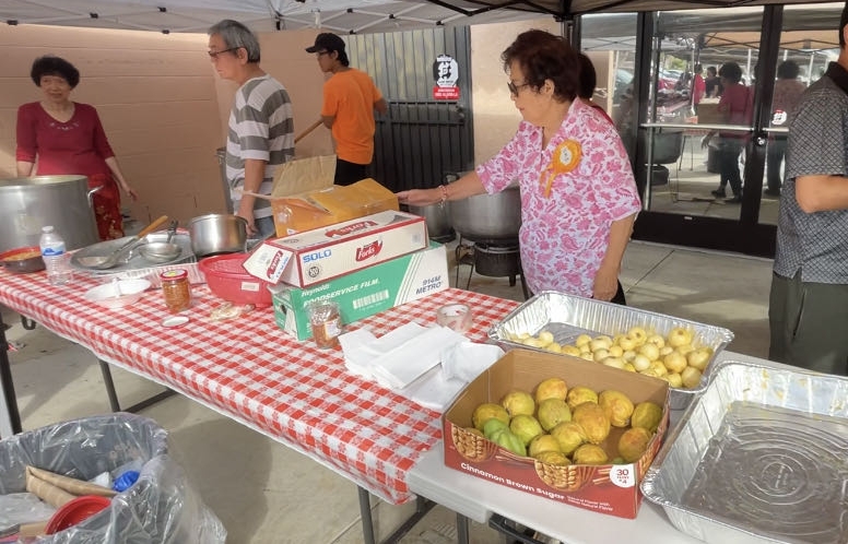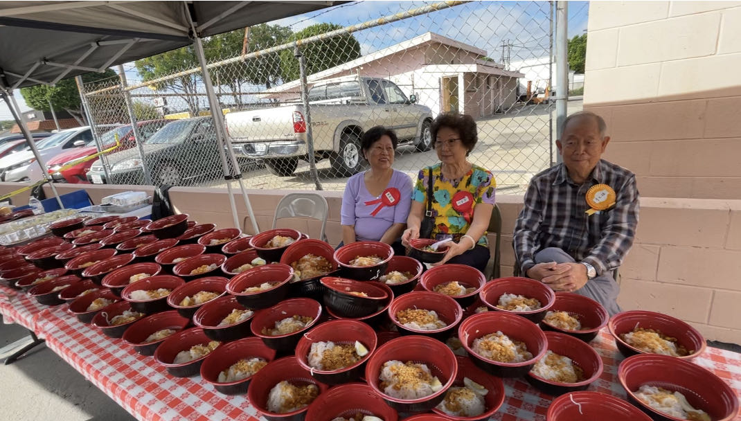 陳彩玉、柯愛貞和胡升山忙著煮魚米粉湯