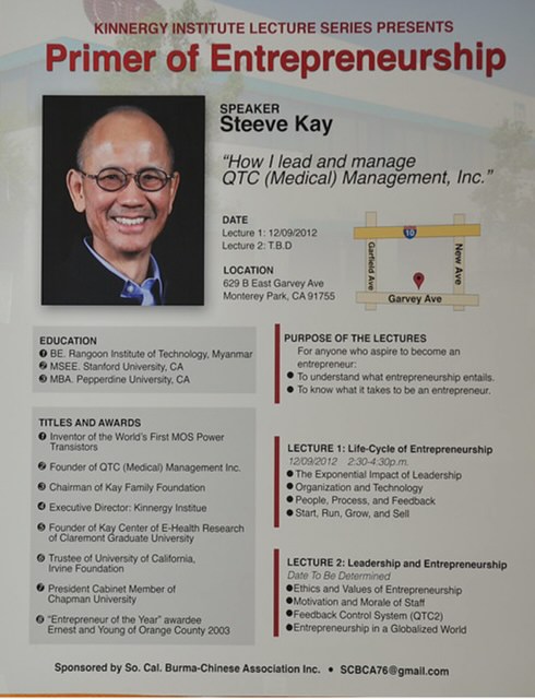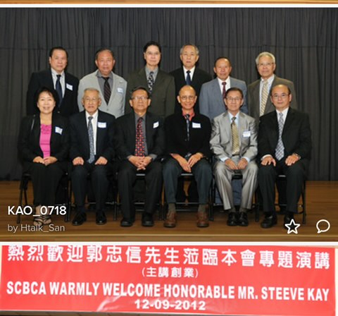 郭忠信先生,英文名Steeve Kay(1943/12/13 – 2024/7/22)出生于福建祖家,成长于缅甸。於1971年移民美国,在美国加州硅谷深造,考入(Stanford)大学取得电机硕士学位,以及美国(Pepperdine)大学工商管理硕士学位。