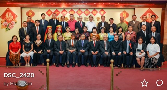 2015年春節,郭忠信先生(前排左六)和缅甸驻洛杉矶总领事吳旺觉所(前排左七)和我会全体幹事合影