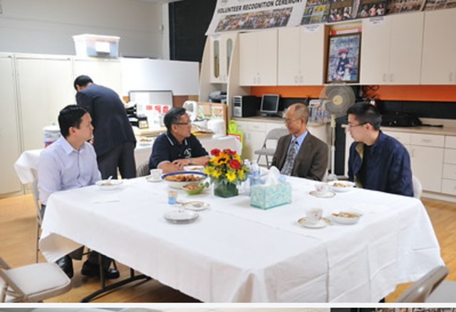 2015年,董事长许秉正在本会会所为郭忠信先生介绍本会职员及活动图片