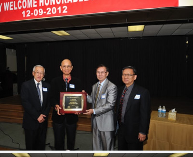 2012年,本会董事会代表赠送荣誉獎牌给郭忠信先生