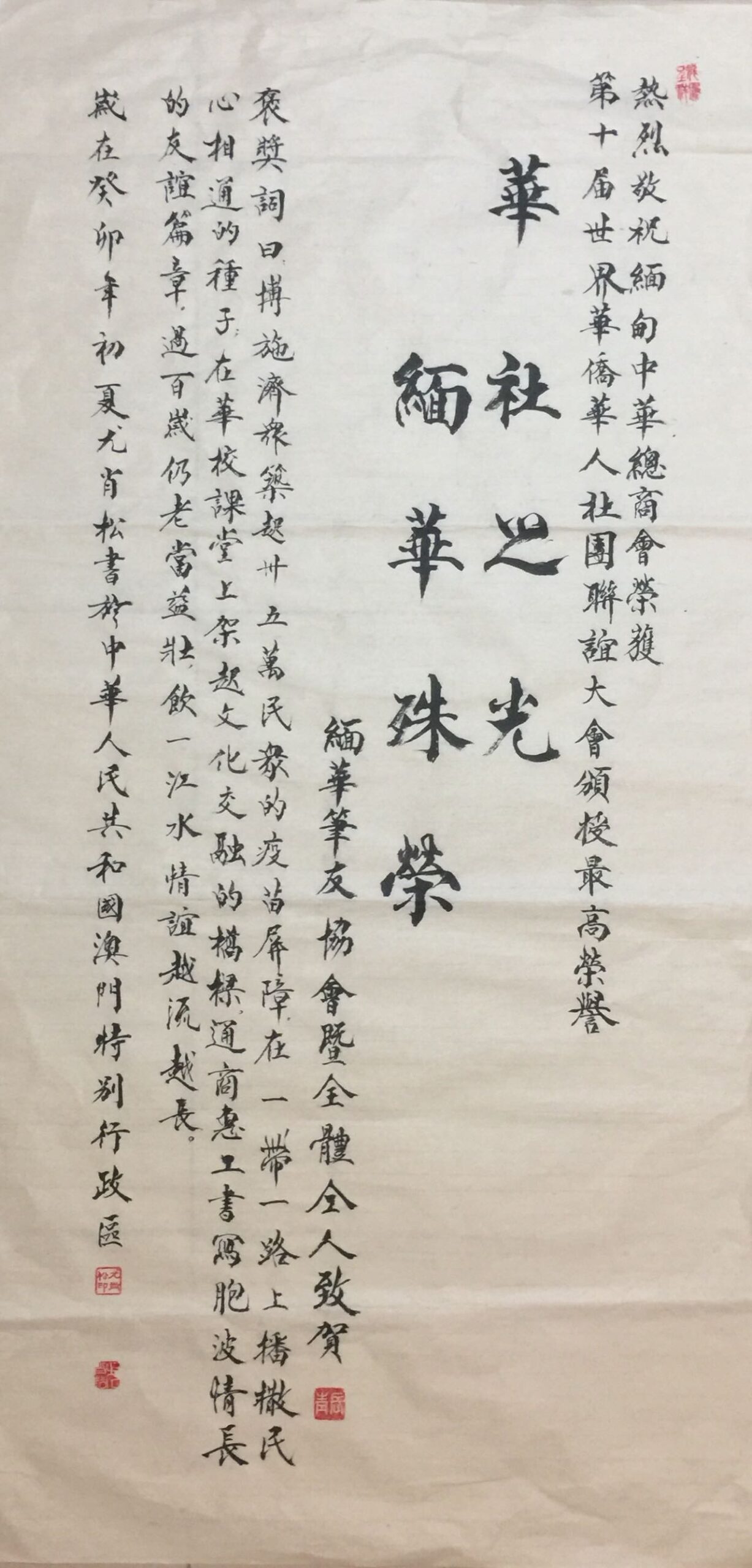 转载请注明:《热烈庆祝缅甸中华总商会荣获第十届世界华侨华人社团联谊大会颁授最高荣誉(文+书法/尤肖松)》 复制链接