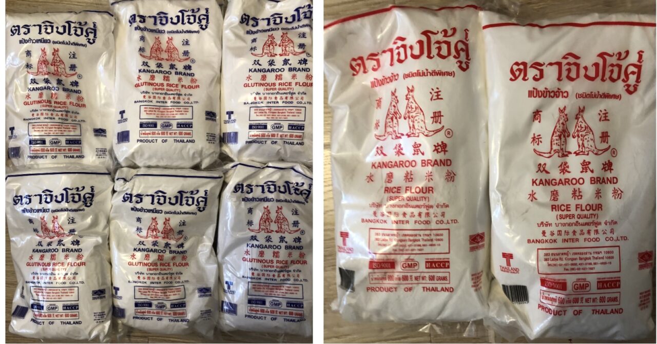 早在两个月前,黄太预先采购好制作年糕的材料:如用来制作红糖年糕的“水磨糯米粉”和制作萝卜糕, 南瓜糕的“水磨粘米粉”以及广东特产的红糖。