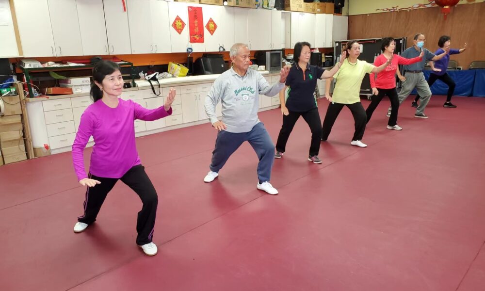 南加州缅华会员們正在练习由雷倩美老师指导的《24式简化太极拳》