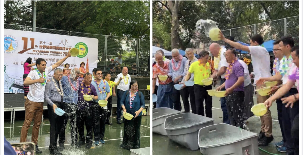 十二點正,在罗斯福公園(Roosevelt park) 举办了第廿届缅甸新年泼水节,如同往年,由於增加了外地的來宾,热鬧欢快情景更上一层樓。首先,在鑼鼓喧鬧聲中,舞龍队矫健敏捷開場,但見金色長龍,上下騰飛、迂回旋转、灵活灵現,令人由衷讚嘆;精彩的歌舞表演,耀眼缤纷、目不暇给, 各种节目呈现着不同领域的风采底蕴,音乐声響徹全㘯、群情湧動;家乡的风味美食四溢飘香,令人垂涎欲滴,人们嚐美食、赏节目、欢声笑語敍乡情。