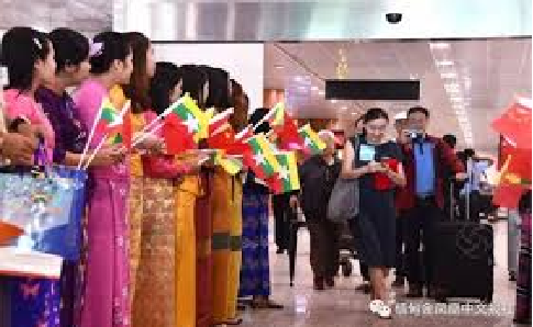 上午11点30分,中国国际航空CA415成都-昆明- 仰光航班降落仰光国际机场,带来了仰光国际机场首批落地签入境的中国游客。机场工作人员整齐排列在海关出口,手捧中缅两国国旗热烈欢迎游客的到来,并向游客赠送旅游礼品。