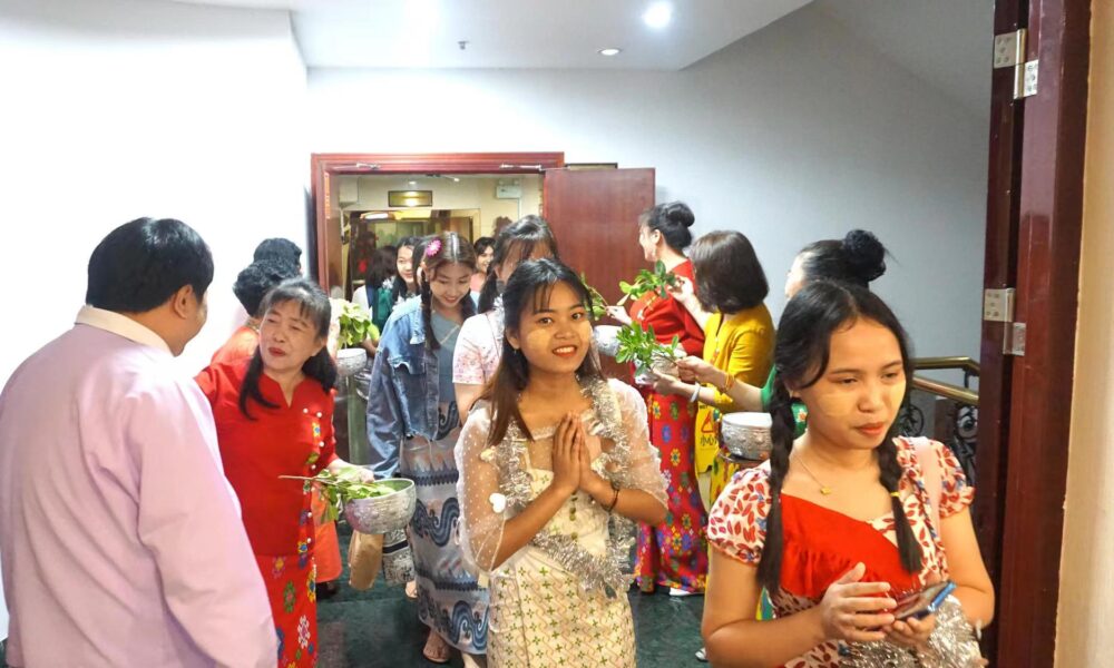 参加泼水节嘉年华活动,让我深刻体会到了文化的魅力和中缅友谊的重要性。这是我第一次在中国参加的泼水节,尽管身处异国他乡,但我感受到了家乡的温暖和亲切。到会场,看到叔叔阿姨们站在门口洒水欢迎,我仿佛置身于家乡的节日氛围中,心中涌起一股莫名的感动。他们用我们熟悉的缅甸语与我们交流,穿着传统的缅甸节日服饰,让我感受到了家乡的味道,仿佛时间倒流般回到了童年时代。而那些动听的缅甸泼水节歌曲更是勾起了我对家乡的深深思念。我由衷的祝愿每个人都能度过一个愉快的缅甸新年,同时也期待着我们缅联会大家庭更加和谐美好。