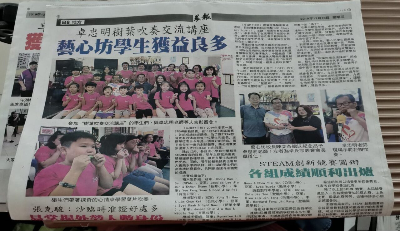 《晨报》等媒体做的报道鼓励了学员们对中华传统文化非遗树叶吹奏传承的信心
