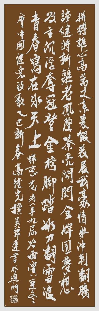 . . . . 一襲青衿天地間,縱情俯仰意悠閒。毫端花木溶溶月,腕底煙雲澹澹山。懷瑾握瑜持樸雅,裁箋染翰寫斑斕。巍峨越秀高千尺,藝術之巔敢勇攀。 书法 一〉劉北照二〉李燕軍三〉茂松四〉馮利發五〉周永騰六〉黎勝培七〉岑建平八〉黃玉靈九〉尤肖松十〉李錦帆十一〉林德盛十二〉阮偉生十三〉莫敬釗十四〉劉北照 . . . . . . . . . ....