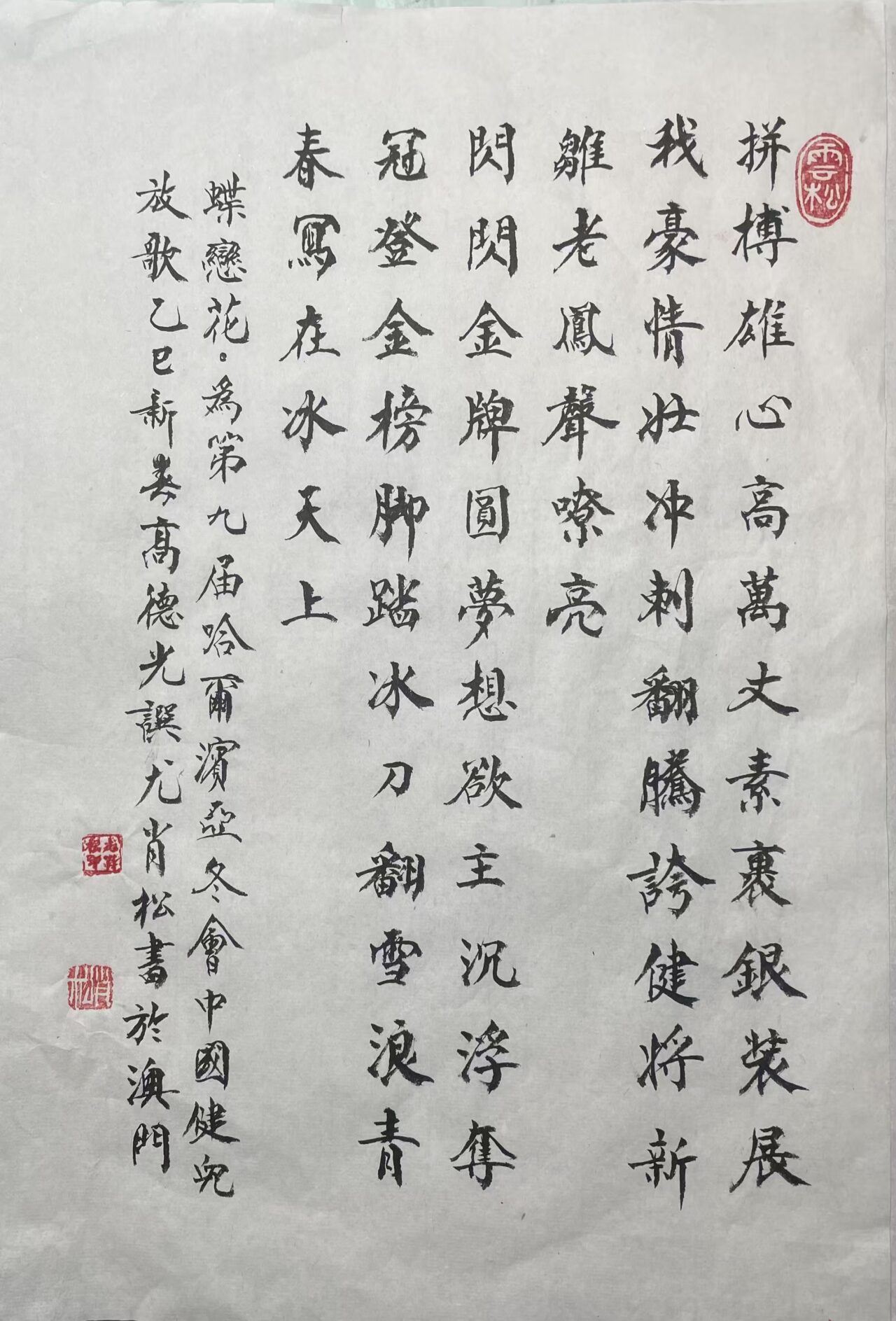 . 復興之路獻嘉謨,軒蓋如雲滙首都。兩會弘開新格局,九州擘劃大藍圖。同商國是輿情奮,共為民生錦繡鋪。議案千條天地換,人間盛世在茲乎! 书法 一〉馮利發二〉李燕軍三〉劉北照四〉茂松五〉周永騰六〉李錦帆七〉羅耀祖八〉李應華九〉莫敬釗十〉黎勝培十一〉阮偉生十二〉岑建平十三〉尤肖松十四〉林德盛 . . . . . . . . . . . . Post...
