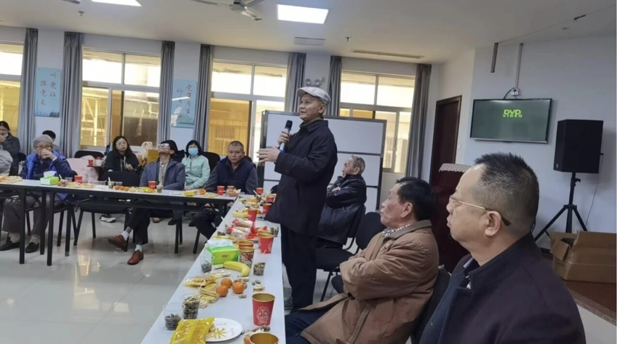 接着是永远会长陈汀阳发言,他如数家珍地聊起对老胞波的慰问工作,并分享了一则感人的慰问故事: 老理事陈金记在疫情间病逝,2023年缅联会曾上门慰问其相依为命的妹妹陈金钗,敲门始终不开。期间经过多方打听,联系上社区助老员,今年缅联会再次前往慰问家住湖里区南山路独居的陈金钗胞波。刚开始门户仍紧闭,老会长陈汀阳用缅语说,开门吧!缅甸仰光您弟弟陈文海有消息了。过一会儿,门终于开了,当金钗老人收到慰问金时,感受到缅联会大家庭的温暖,她非常的开心。同时,陈老会长还分享了1月24日、26日与李绍宗老监事长去海沧公安分局刑侦队,协助警察办案当缅文缅语翻译,维护社会治安的事迹。