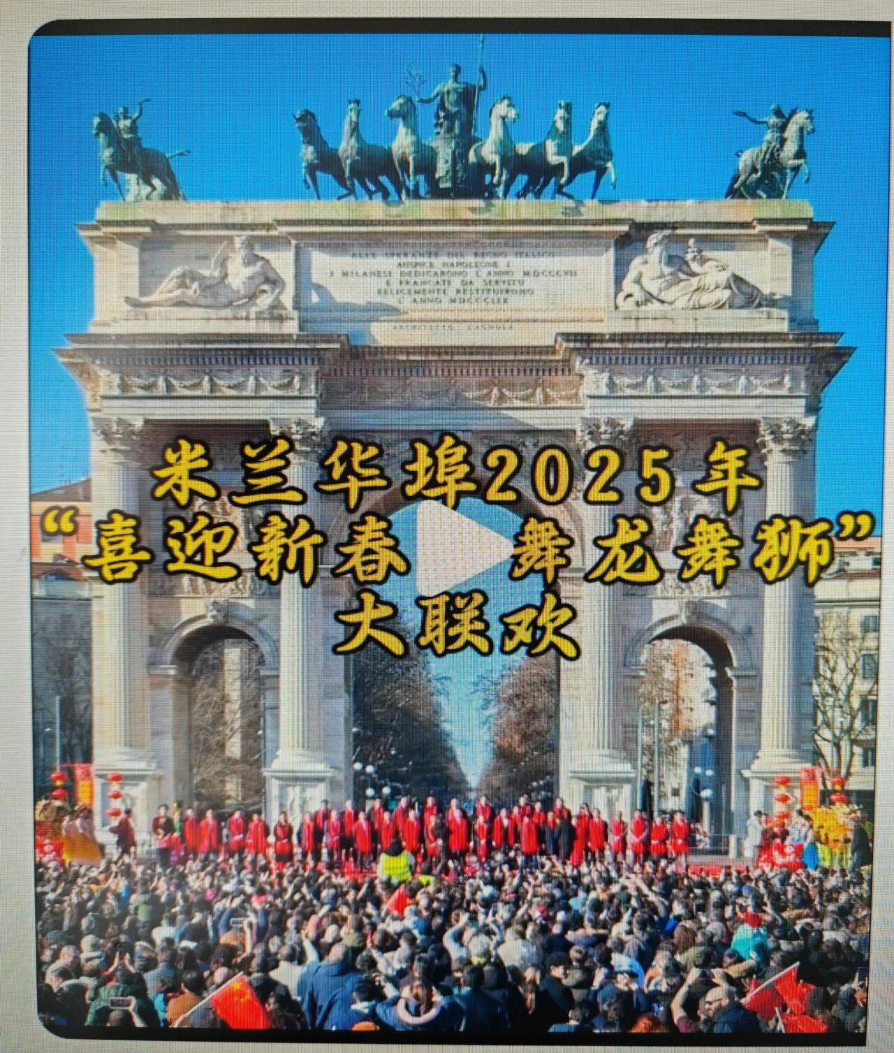再翻看手机看到另一张图片——米兰华埠2025年~喜迎新春.舞龙舞狮.大联欢。画面中,华侨华人载歌载舞,共庆佳节,热闹非凡。