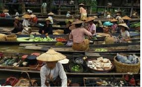 这里是花摊,这些花什么用途呢?缅甸妇女喜欢戴花,大多是鲜花。缅族妇女爱打扮,喜欢扎发髻,在头上插鲜花。妇女常戴的饰品有耳环、耳钉、戒指、手镯等,现代女性好用化妆品。 传统上,缅族妇女常在脸上和身上擦黄香楝粉。黄香楝粉由黄香楝树干研磨而成。妇女们早上沐浴后,常把黄香楝粉调水,涂抹于脸颊、手臂上。黄香楝粉不但气味芳香,用以防晒和保护皮肤。