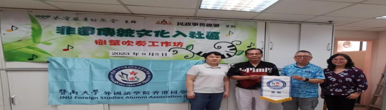 香港荃湾葵青坊众会与暨南大学外国语学院香港同学会为了响应政府号召,推动和积极开展非遗传统文化入社区活动,在香港民政事务总署的资助下,于8月5日盛情邀请深圳市卓忠明(深圳市非物质文化遗产协会会员、香港艺术家协会主任委员、暨南大学外国语学院香港同学会艺术顾问)前来进行非遗树叶(首创花瓣、金叶笛)吹奏的技艺交流传承,和非遗含义~非遗之路~非遗作品~非遗传承~社会效应~非遗创新的讲座,历时90分钟。由于安排合理,内容新颖,讲解风趣,曲子入胜,学员们兴致颇高,有的表示收获多多下次再来,有的提出与乐队合奏的建议,活动取得了意想不到的成果。此项活动原计划于2019年开展,因疫情阻隔,延至今日举行,其中的坚守和毅力令人佩服。