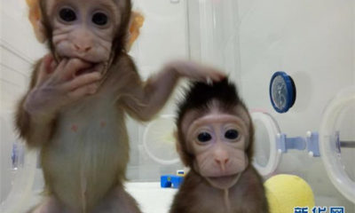 克隆猴“中中”和“华华”在中科院神经科学研究所非人灵长类平台育婴室的恒温箱里(资料照片)。 用一把毫毛,变出千百个一模一样的猴子——《西游记》里的神话正在成为现实。克隆猴“中中”和她的妹妹“华华”在中国诞生近两个月!北京时间1月25日,它们的“故事”登上国际权威学术期刊《细胞》封面,这意味着中国科学家成功突破了现有技术无法克隆灵长类动物的世界难题。 自1996年第一只克隆羊“多利”诞生以来,20多年间,各国科学家利用体细胞先后克隆了牛、鼠、猫、狗等动物,但一直没有克服与人类最相近的非人灵长类动物克隆的难题。科学家曾普遍认为现有技术无法克隆灵长类动物。中科院神经科学研究所孙强团队经过5年努力,成功突破了世界生物学前沿的这个难题。利用该技术,科研团队未来可在一年时间内,培育出大批基因编辑和遗传背景相同的模型猴。新华社发(中科院神经科学研究所提供) 护士在中科院神经科学研究所非人灵长类平台育婴室给克隆猴喂奶(1月22日摄)。新华社记者 金立旺 摄 克隆猴“中中”和“华华”在中科院神经科学研究所非人灵长类平台育婴室的恒温箱里(资料照片)。 这是中科院神经科学研究所孙强研究员(左)和刘真博士(1月21日摄)。新华社记者 金立旺 摄 中科院神经科学研究所孙强研究员(左)和刘真博士在育婴室查看克隆猴“中中”和“华华”的情况(1月22日摄)。新华社记者 金立旺 摄 在中科院神经科学研究所非人灵长类平台,孙强研究员(后)向兽医了解怀孕母猴的监护情况(1月22日摄)。新华社记者 金立旺 摄 在中科院神经科学研究所非人灵长类平台实验室,刘真博士借助显微设备对卵母细胞进行“去核”操作(1月22日摄)。新华社记者...