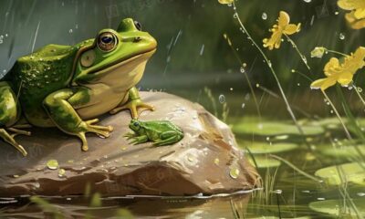 霏霏春暮雨,艷艷牡丹花。 水面浮萍綠,荷池躍眾蛙。...