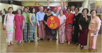 乡愁是一碗水,一杯酒, 一生情,一眼眶淚, 故乡的千年文化, 大金塔泼水节点灯节, 是我的 眷恋,故乡, 一生的怀念,一生情。 这是陈孙荣的精彩开场白,集演讲,朗诵,歌声于一体。原本笑声嘈杂的会场顿时安静下来。大家都被他的生动的感情吸引,用心倾听,不时鼓掌。只见他手捂胸前,闭起眼神,深情地,中缅并用地,唱起了乡愁,他说:大家一起穿缅装,一起吃香喷喷的鱼汤粉,一起同乐,温馨地回忆我们的童年。我们喝缅甸的水,吃缅甸的米,吃缅甸鱼汤粉长大,我们很怀念我们的故乡,趁今天华中校友会欢庆泼水节,请大家放开胸怀,尽情和我们一起同乐。 随着缅甸的音乐声响起,四位“宇瑞優“ 苏顺路,丘国君,杨德欢和张少战欢快上场,他们戴大眼镜,帖长鬍子,拿小花伞,穿格子沙笼,虽然年纪已坐七望八,动作还甚灵活,一边跳舞,一边还要护着鬍子和沙笼以防掉下来,动作好玩搞笑,给来宾带来不少欢乐。 今日的联欢节目让来宾们随意登台,临场发挥,黄素馨独唱缅甸歌时,丘伟文,杜国章两位老前辈双双上台伴舞,虽然从未排练,跳起来动作有板有眼,中途还上演了一幕掉下沙笼的镜头,大家看得哈哈笑。 2003年,黄娟娟带领华友表演“瓦城的花朵“,时隔十多年的今天,她又带领来宾上台,各人手拿银钵,参跳者踊跃,有姐妹,有母女,还有婆孙,各位女士的缅装颜色艳丽,配上”白白,蓝蓝,红红,黄黄“的歌词,无需排练,却婀娜多姿。博得观众不少掌声。 在舞台上,一边跳舞,一边也展现了时装秀,今天大家都很美,其中雷倩美,林惠吟,谭美意,谢金兰,罗彩萍,叶秀华,林盈盈小姐及杨德欢的小孙女杨瑞钦等的缅装都很好看。 莊玉娇老师向来是联欢会的主心骨兼台柱,今天也不例外,带领全体从头到尾跳缅甸舞及排排舞,热闹的气氛引领了男女老少都投入参与。黄景象学长近年腿脚不太灵便,走路需持拐杖,今天他把拐杖扔一旁,走到队伍中跟随音乐跳得很起劲,完全不见老态。听说今天他家人本来要带他去庙里参加活动,他宁可选择来参加华友会的活动,这是乡情,同学情的使然。 爱跳舞的跳舞,喜唱歌的唱歌,歌王黄国任几乎包揽全场,联欢会未开始,他已经沉醉在自己的歌声里,敢问钦瑞为何自顾自地吃鱼汤粉,她回说,拿给他不吃,只顾唱,他的那一碗也就落入我肚里了。 ...