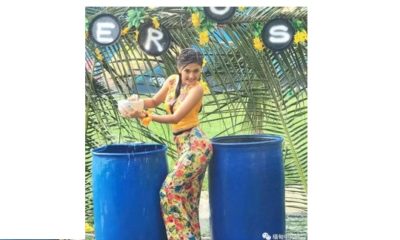 一年一度潑水節、 洗尽凡麈煥新春! 新芽抽枝百花發、 歡樂歌声四处唱、 姑娘湿身款擺舞、 冷水淋身倍思乡。 眸目含春、嗔笑倩兮、樱桃小咀不點赤。 婀娜長腿、扭腰撅臀、湿身花裙添嫵媚。 似攏了潑水節的半日烟雨、無限風情尽蕴其中……...