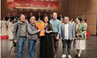 . . 綸音喜聽盼中樞, 習習仁風到鏡湖。 氣象萬千蓮島秀, 春秋廿五錦程鋪。 四橋飛架通天地, 兩制成功樹楷模。 出水芙蓉香益遠, 果然南國一明珠。 . 书法 一〉李燕軍 二〉劉北照 三〉白善華 四〉茂松 五〉林德盛...
