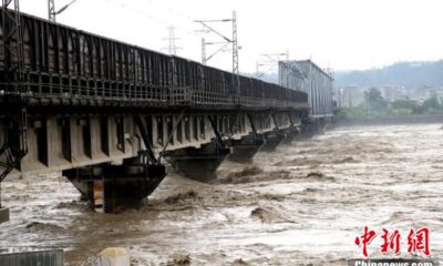 2020-08-18 07:56:39 2020年8月17日,四川绵阳,因持续强降雨,加之上游泄洪,四川绵阳市境内涪江流域水位迅速上涨,对宝成铁路涪江大桥造成影响,当日下午,总重量超8100吨的重载货物列车被机车推上大桥,“重车压梁”再次抗洪护桥。 总重量超8100吨的重载货物列车被机车推上大桥,“重车压梁”再次抗洪护桥 (图片来源:视觉中国) 责任编辑:田博川...
