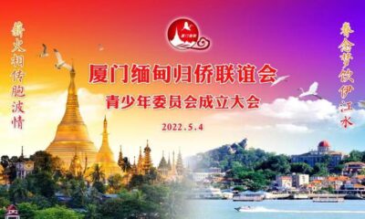 2022.3.19厦门缅甸归侨联谊会55岁以下青少年,经线上投票选举,厦门缅甸归侨联谊会青少年委员会宣告成立,特赋词庆贺。 胞波鹭岛庆清新。薪火相传人。继承前辈亮节,盛世惜青春。 青少委,一家姻。诉情亲。与时俱进,团结互助,踔厉飞云。...