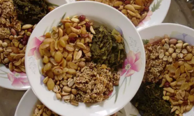 微笑吧缅甸 WeChat IDsmile8mynamar Intro带您亲临亚洲最后一块处女地,感受缅甸的宁静与奢华! 你如果曾经在缅甸住过,它将让你回忆起过去:你一定会想起和家人、和朋友一起在路边小摊品尝缅甸的风味小吃,或是坐在人行道旁矮脚凳上悠哉悠闲地喝着奶茶,手里拿着印度的馕饼,沾着缅甸的蒸豌豆粒(贝标),或者吃一碗鱼汤面(莫亨嘎),或椰汁面等等…… 这些缅甸风味小吃,让我们垂涎三尺;也可让不曾到缅甸的“驴友”们对缅甸风味小吃略知一二,下面就跟随小编一起来看看吧! ▲“乐魄夺”凉拌咸茶是缅甸著名的风味小吃 ▲“糕哼瑞吉”用糯米烤制成的糕点 ▲“馍拜到”用白米做成的风味小吃 ▲“馍爵德”用米浆制成的风味甜品糕点 ▲“馍圣宝”米浆发酵蒸制的风味糕点 ▲“特敏呢”用糯米椰子芝麻豆油烹制的食品 ▲米浆发酵制成的煎饼甜或咸,甜味常常会加一点鸦片子也叫鸦片饼 ▲用大米和豆类制成的甜品小吃 ▲用黑糯米和白糯米制成的小圆糕 ▲用米浆和豆粒煎制成的夫妻饼是缅甸劳动人民喜爱的小吃...